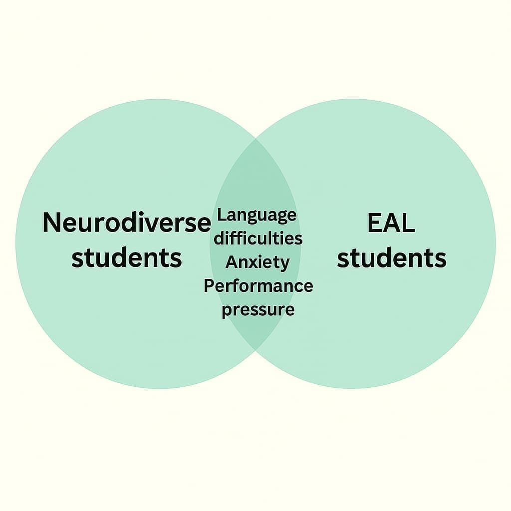 As a result of global mobility, HE institutions cater for increasing numbers of EAL students. They share many of the challenges faced by neurodiverse students.